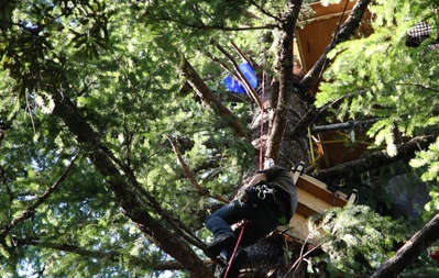 Above is a video of environmental activist Josh Eng climbing into his home in the treetops. When I first heard this story last month, he’d been up in the trees with his friends for nearly 10 weeks.