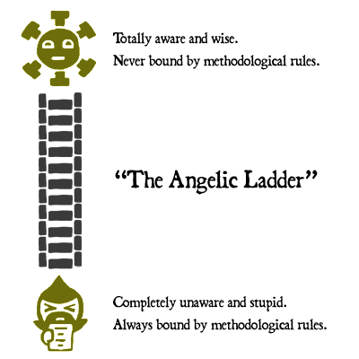 Furthermore, because the Archangel is fully aware and fully wise, she is never bound by methodological rules. In other words, she needs no “cheat sheet” to augment her decisionmaking abilities; her decisionmaking abilities are already perfect. As such, if somebody handed her a guidebook, she would either immediately reject it, or it would be redundant to what she already knows.