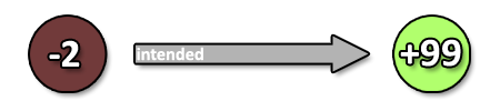 Consider the following diagram, where the ill dark-red “bad” circle is committed, while intended to make the green “good” circle come about.