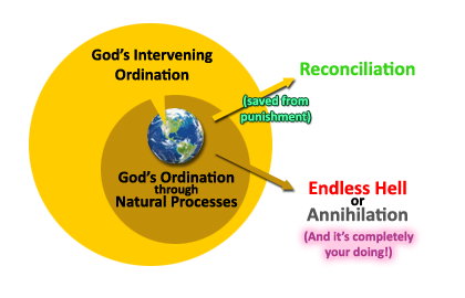 In order to explain the evil that happens in the world, it makes appeals to the selective indirection of God’s will and/or his circumstantially incommensurable interests. When all is said and done, a perpetual appeal is made to a divine “glory-extraction” from the eternal suffering and/or obliteration of the unreconciled.