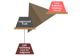 That is, whenever we try to practice “judgmental truth in love,” our secret “love for judgment” tilts the scales, and the “judgmental end” far outweighs the expressed patience, compassion, understanding, mercy, and tenderness.