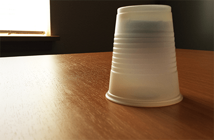You can see just enough that you know the coin has fallen. But the cup is just opaque enough that you can’t tell whether it’s fallen heads or tails.