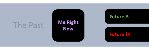 Before me is a choice between two mutually-exclusive options. One option will yield “Future A,” and the other “Future !A.”