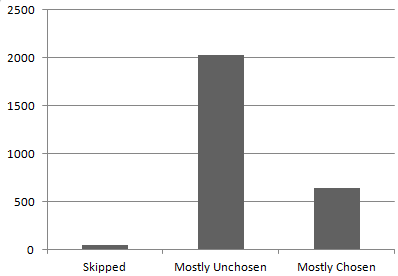The core issue is the following stupid problem: When “mark only your favorite” is used, the sway of ideological groups is effectively divided by the number of choices in that group. Those variables should never affect one another; but here, they do. It’s as if they’re grafted together “upside-down,” since mainstream views tend to have a greater number of candidates representing them.