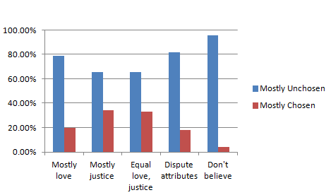 Percentage “Emulating God’s attributes” against “Homosexuality chosen?”